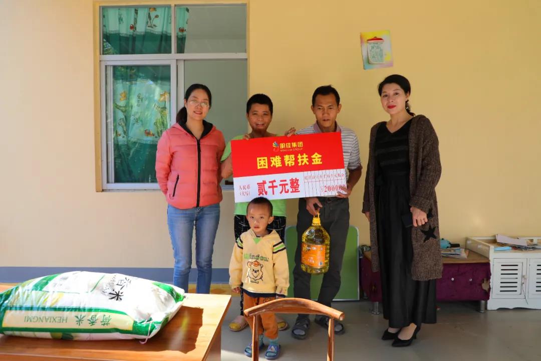 2021年1月12日,明佳集團(tuán)黨支部書記、董事長陳明,副總裁羅京軒,工會主席高斐斐,副主席李萍及婦聯(lián)主席熊牡丹一行前往慰問困難職工,為他們每人送上了2000元的幫扶金以及米、油等生活物資,還貼心地為有孩子的職工們送去一套學(xué)習(xí)桌椅。