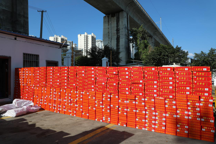 2021年2月3日上午10:00時,公司倉庫工作人員正抓緊時間清點物資,確保1800多名職工都能收到。
