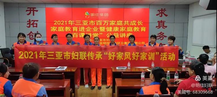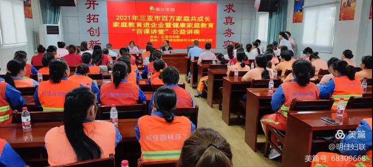 為引導廣大婦女帶動家庭成員大力培育新時代家庭觀,推動社會主義核心價值觀落細落小落實到家庭,切實落實家庭教育立德樹人的根本任務,根據(jù)省婦聯(lián)“家家幸福安康工程”部署,結(jié)合“我為婦女群眾辦實事”實踐活動。2021年7月20日下午15時30分,由市婦聯(lián)主辦、明佳婦聯(lián)協(xié)辦的2021年三亞市百萬家庭共成長家庭教育進企業(yè)暨健康家庭教育“百課講堂”公益培訓課在明佳三樓會議室成功舉行,培訓內(nèi)容為家庭教育知識和女性健康知識,明佳集團80余名職工參加了此次培訓。