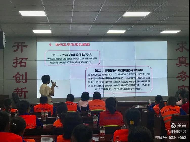 接著,由三亞市衛(wèi)生健康服務中心羅英媚醫(yī)師講解女性健康知識。課上羅醫(yī)師分別介紹了女性生理知識,如何科學預防、及早發(fā)現(xiàn)乳腺癌及宮頸癌,號召大家定期做醫(yī)學檢查,并隨時自我檢查,做好疾病預防。